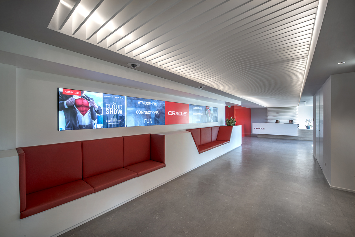 Una nuvola di dinamicità e innovazione, di comfort e senso d’accoglienza, di condivisione e collaborazione, di solidità e leadership, di tecnologia, sobrietà e freschezza, e anche di italianità: queste le parole chiave che caratterizzano gli spazi della nuova sede Oracle Italia a Roma. Ed è la nuvola, il Cloud, il main concept che sintetizza il senso generale di tutto il progetto, con i suoi valori di leggerezza, accessibilità e velocità.